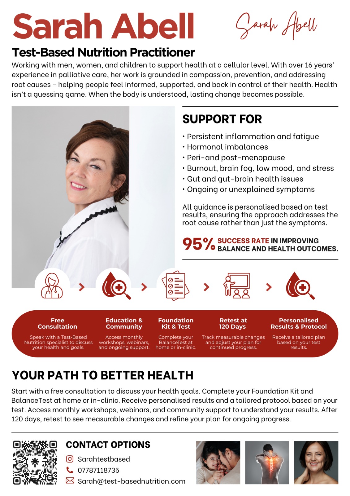 My approach is centred around objective testing rather than guesswork, that is specific to you. By looking at measurable markers within the body, we gain clarity about what’s happening beneath symptoms. From there, personalised nutritional support can be introduced in a way that works with the body’s natural processes.